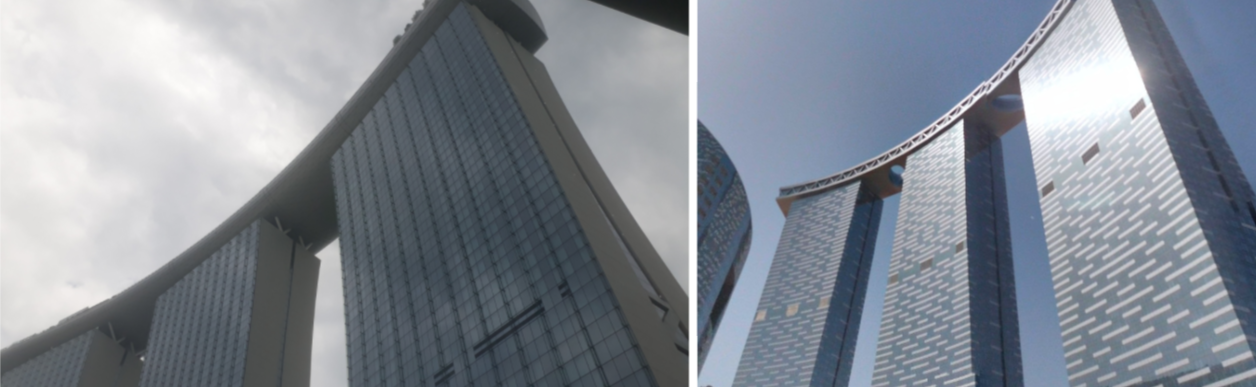 Marina Bay Sands, Singapore (Left) [1], The Gate Towers, Abu Dhabi (Right)