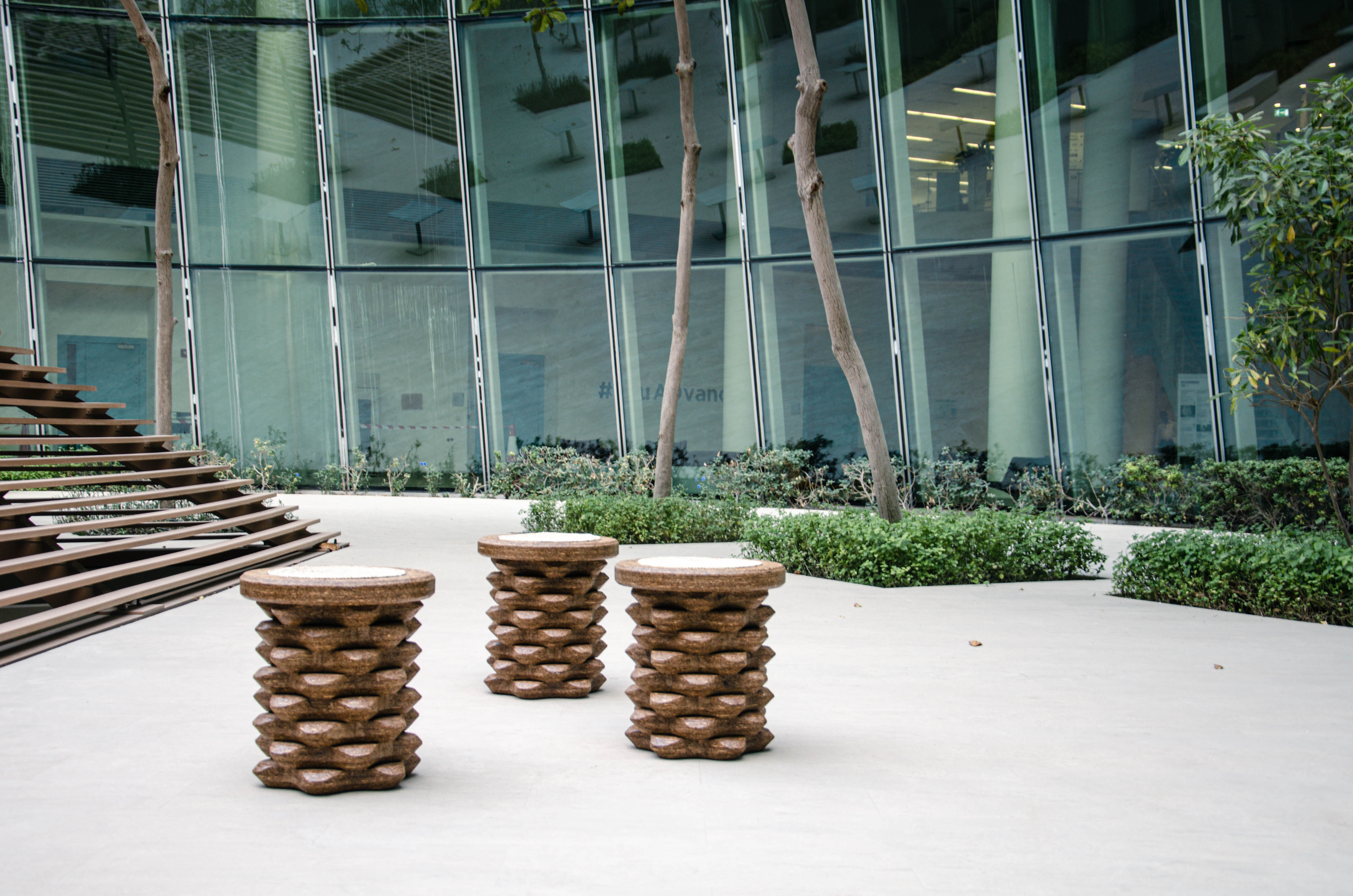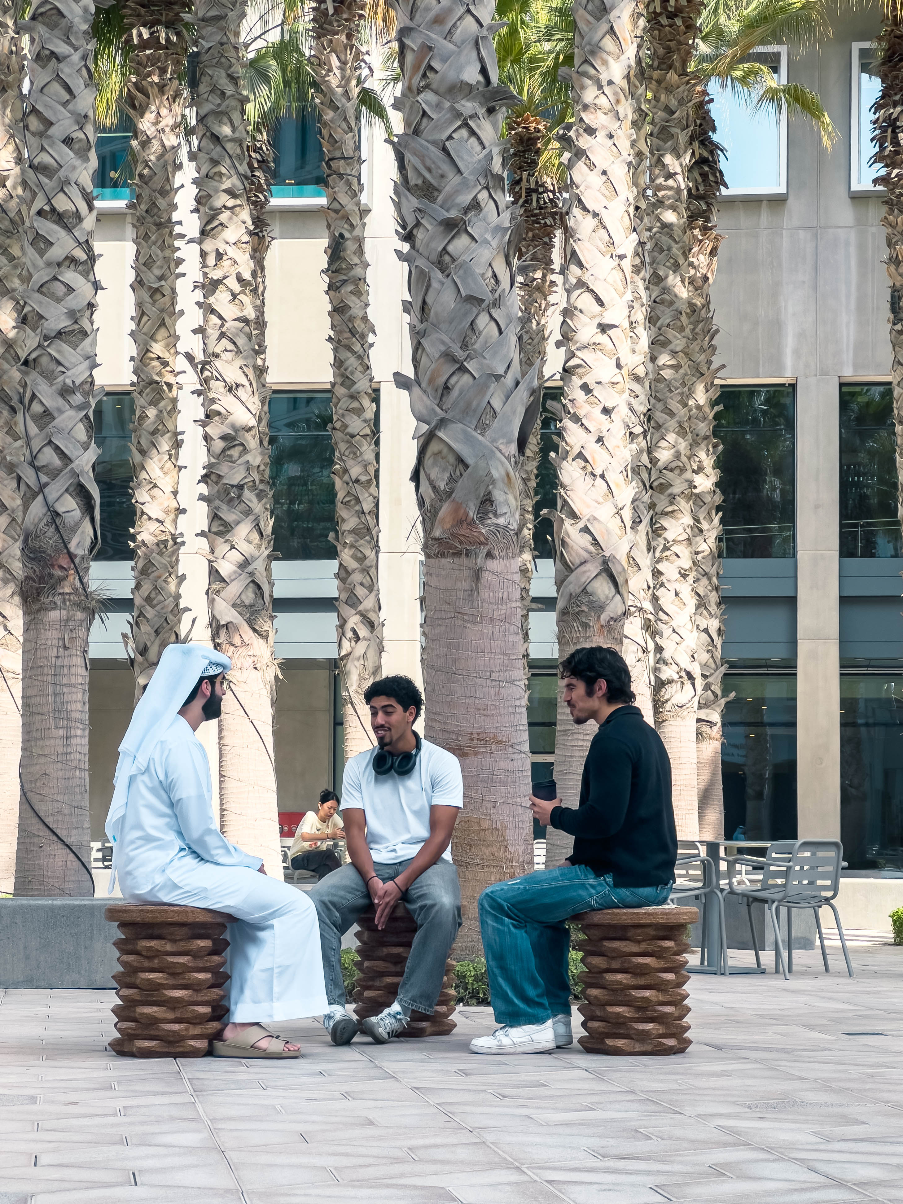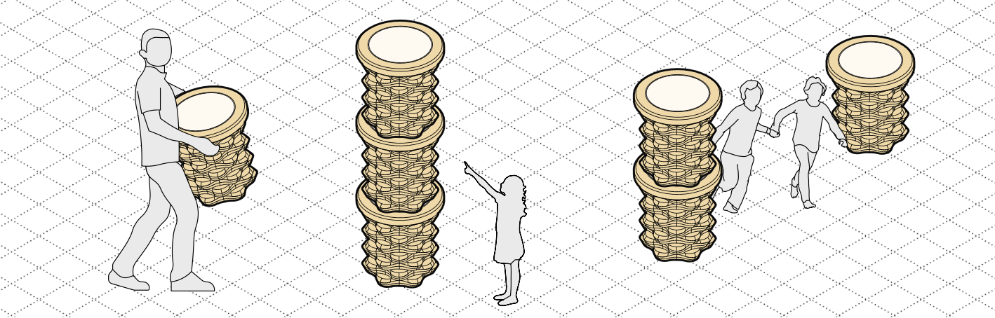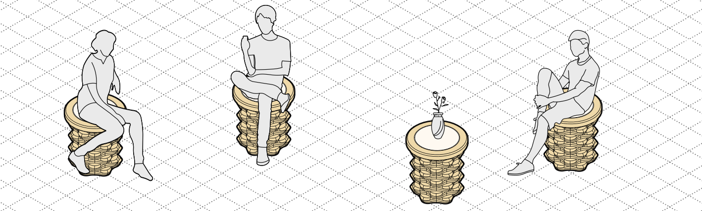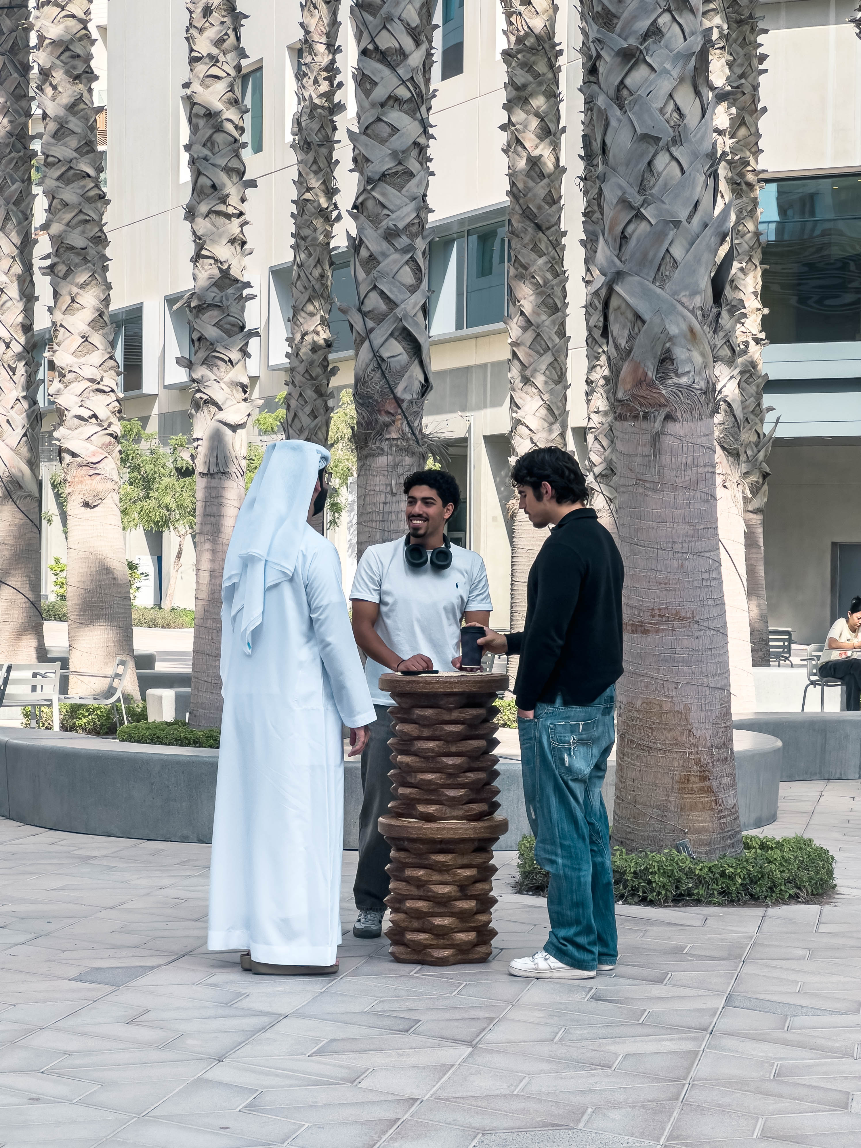 The Nakhla Stool takes inspiration from the Emirati cultural icon to activate social spaces. Each set comes with three stools that are a larger part of a whole. In the same way as the date palm tree, it encourages people to gather by activating social spaces. The system stacks units vertically for different functions.