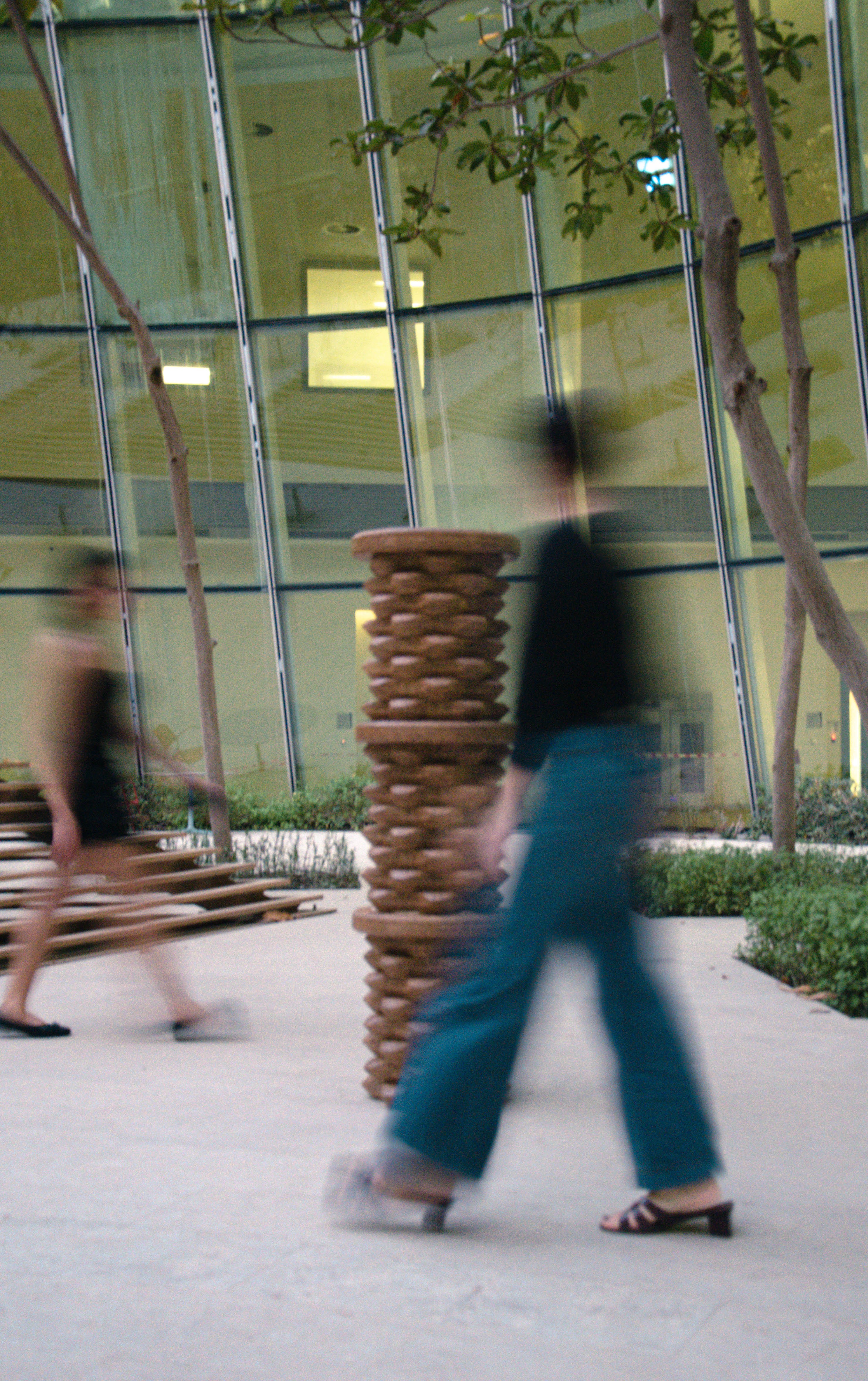 Shaped similar to the tree’s trunk, the design of the stool references both the date palm’s texture and the repetition motifs of islamic geometric art commonly found in Arabic architecture and textiles.